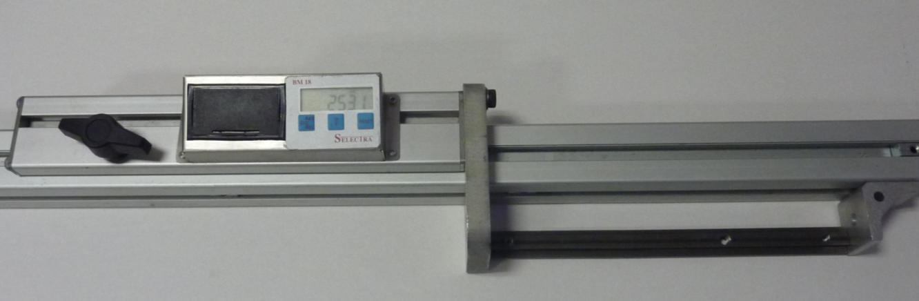 Suite à de nombreuses demandes nous avons détourné de son utilisation classique notre butée manuelle pour en faire un pied à coulisse grande longueur.