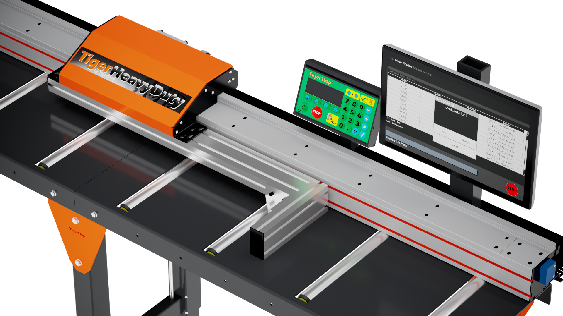 La butée numérique Tigerstop HD est la butée idéale pour la moyenne et grosse série en forte charge. Elle a une force de poussée de 600 Newtons sur des longueurs de 24 mètres !