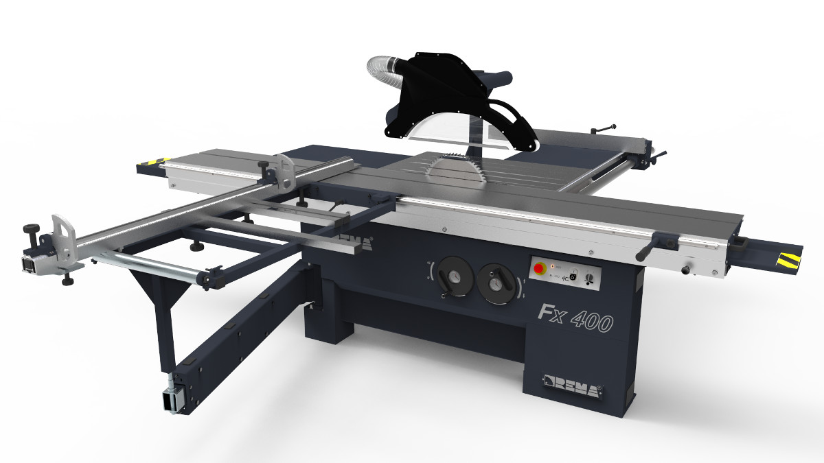 La protection supérieure de la scie est réglable , pour couper à un angle allant jusqu’à 45⁰ et pour couper à angle droit. La protection est également équipée de rouleaux pour faciliter le guidage du matériau.